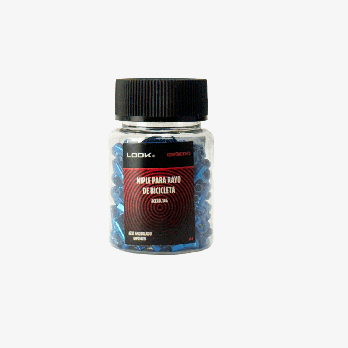 Niple de acero anodizado en bote, 144 piezas.